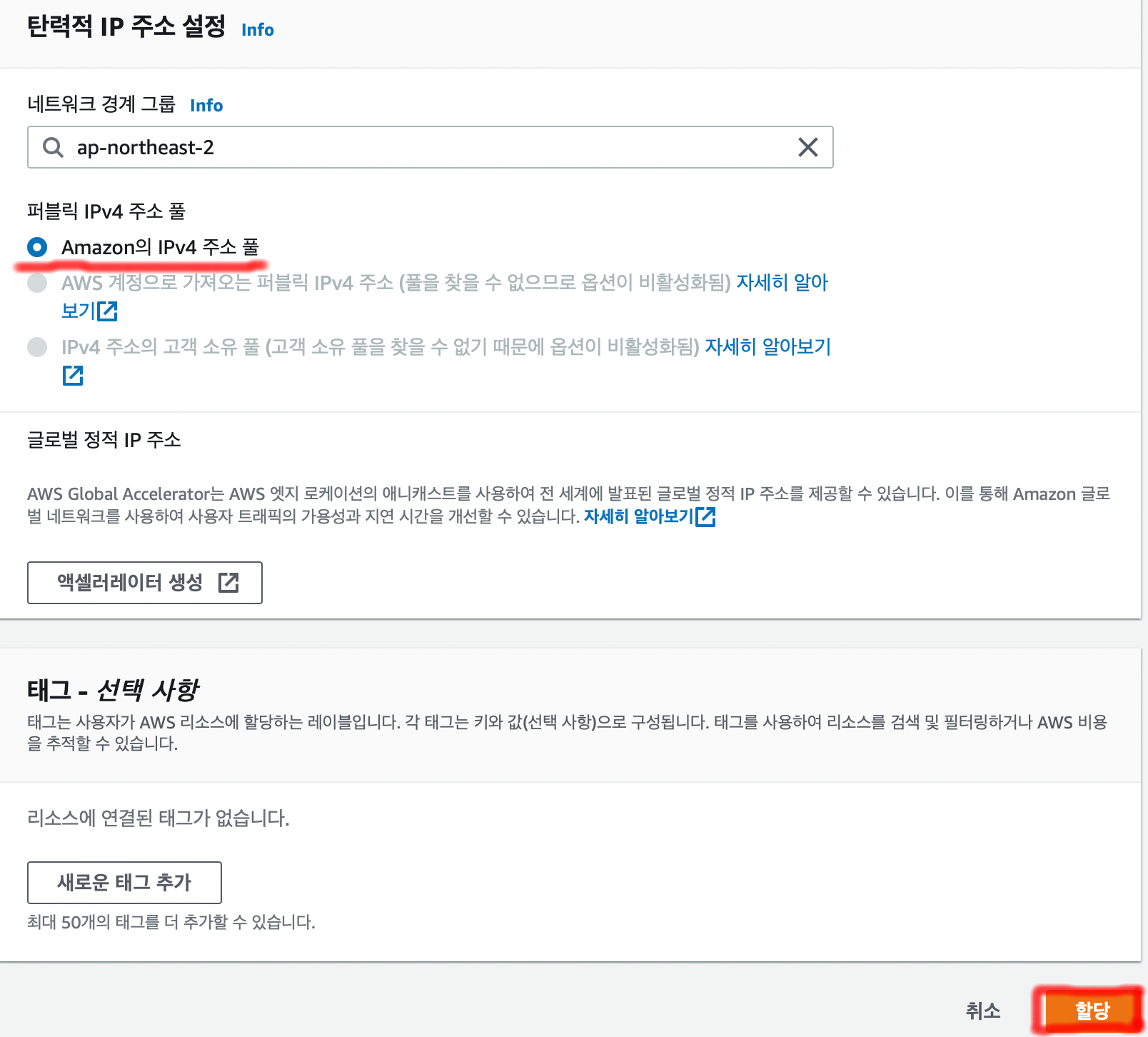□ EIP 할당 (Elastic IP, 탄력적 IP)