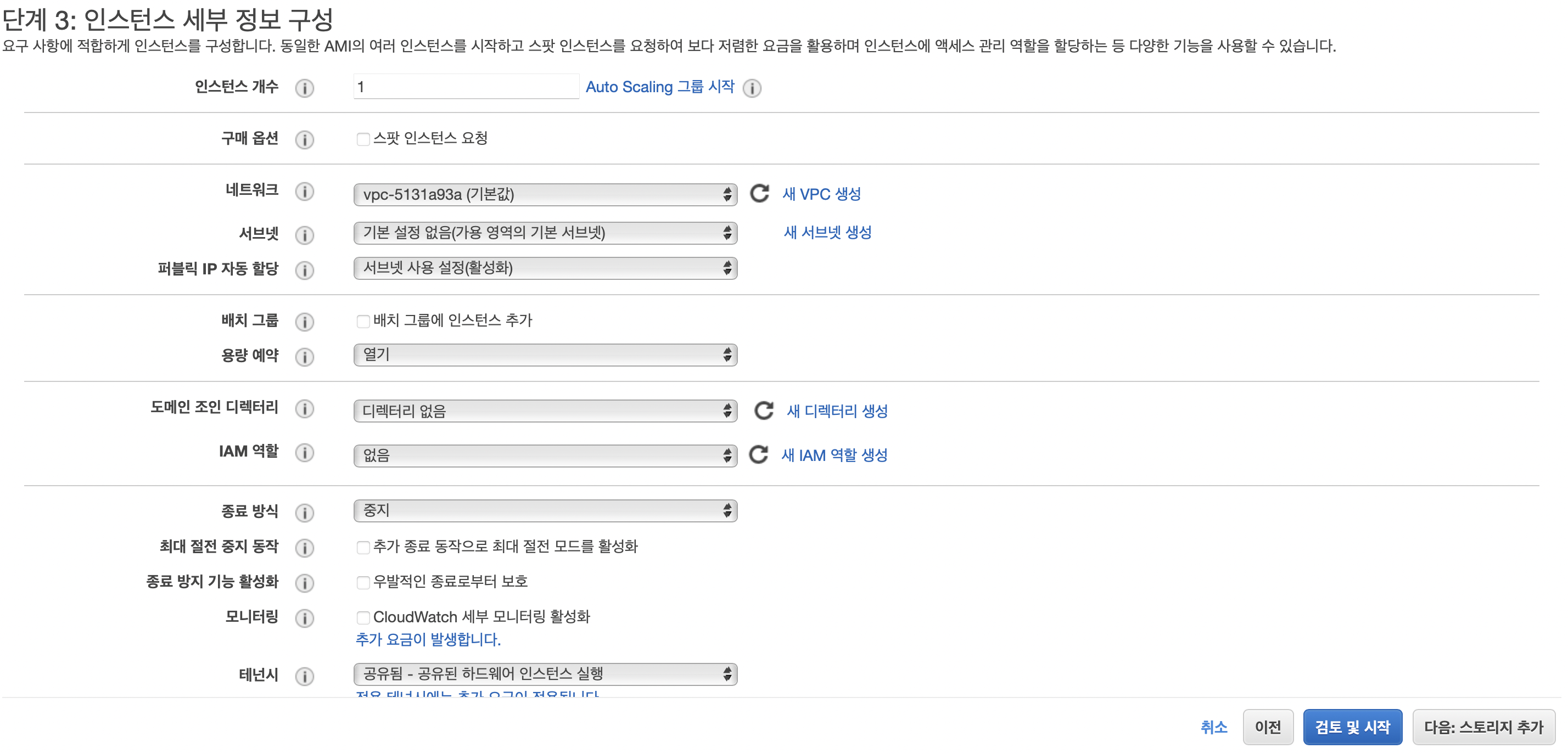 단계3 : 인스턴스 세부 정보 구성