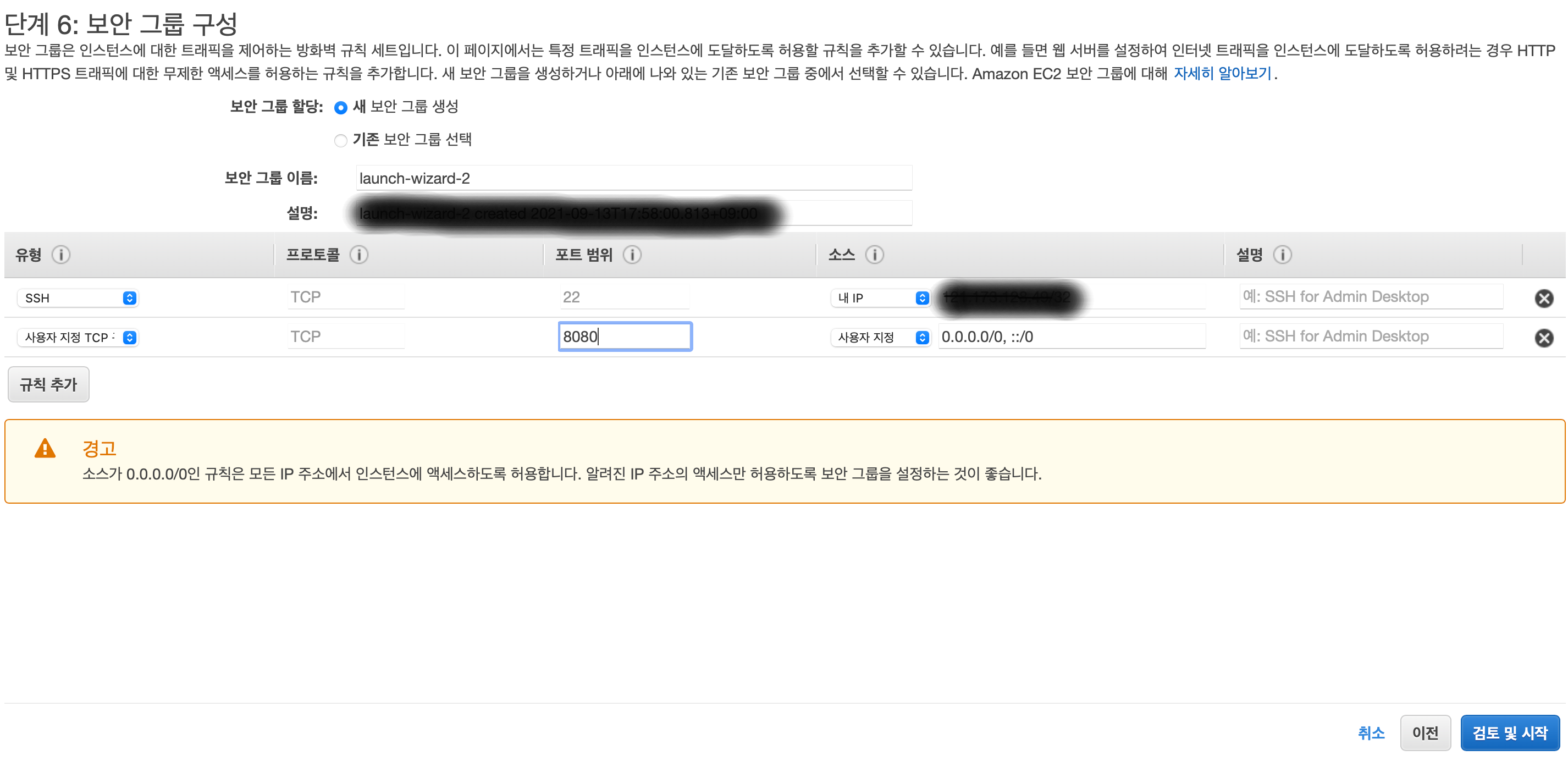 단계 6 : 보안 그룹 구성